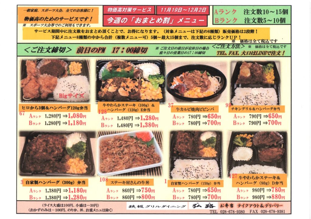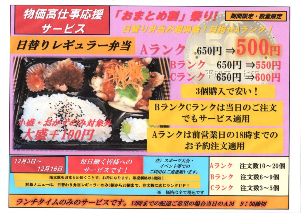仕事応援・一般用物価高対策用「おまとめ割」できました!(11月19日~12月16日)