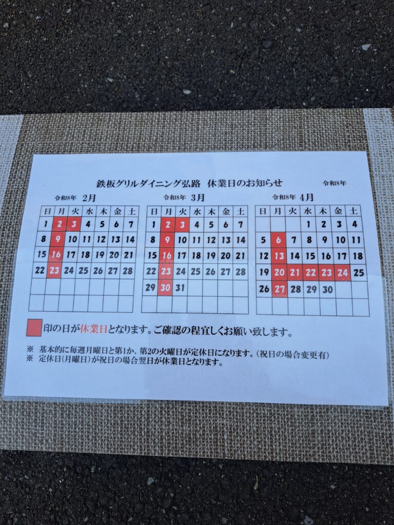 営業カレンダー(令年8年2月〜令和8年4月)